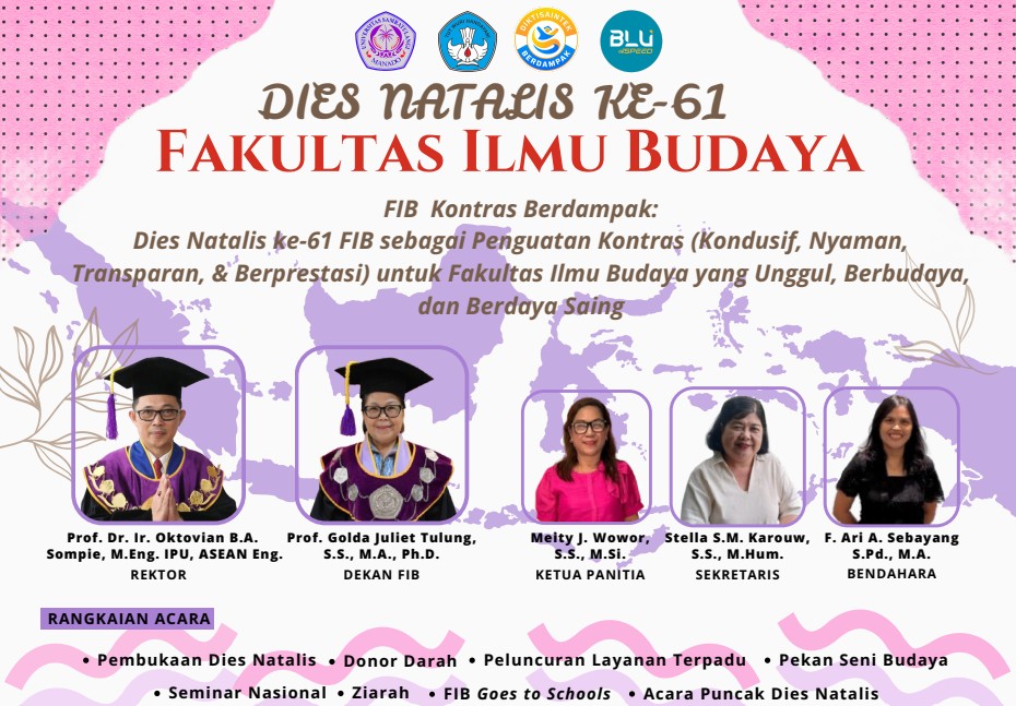 Sepatutnyalah kita memanjatkan puji syukur kepada Tuhan Yang Maha-Esa, karena Fakultas Ilmu Budaya (FIB) beroleh kesempatan memiliki situs website yang baru melalui UPT Teknologi Informasi dan Komunikasi Universitas Sam Ratulangi Manado….
