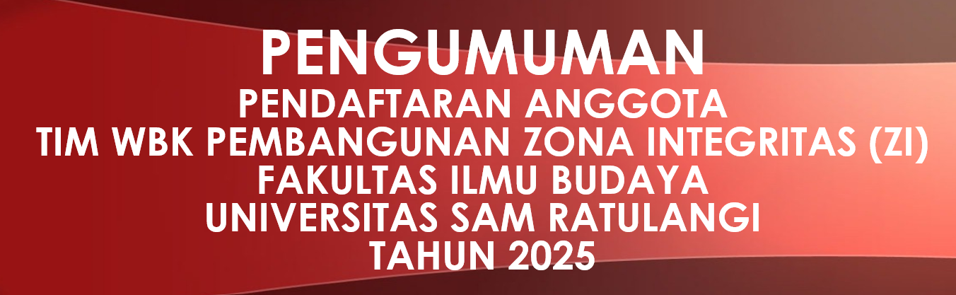 PENGUMUMAN PENDAFTARAN ANGGOTA TIM WBK PEMBANGUNAN ZONA INTEGRITAS (ZI) FAKULTAS ILMU BUDAYA UNIVERSITAS SAM RATULANGI TAHUN 2025